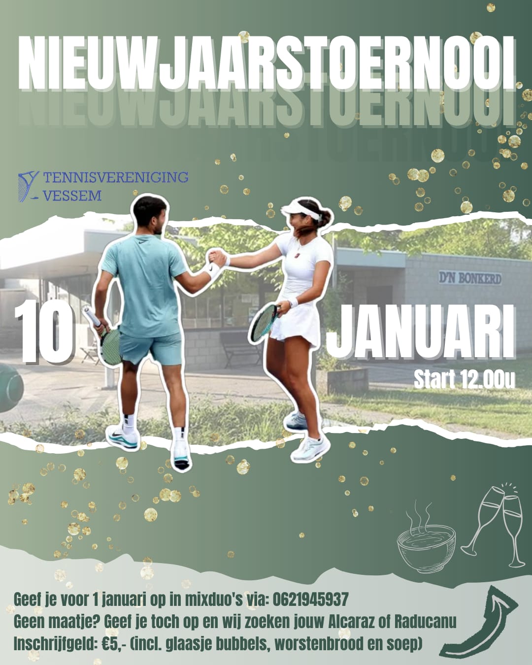 Het eerste sportieve tennisevent van het nieuwe jaar staat voor de deur – en jij wilt daar natuurlijk bij zijn! Meld je snel aan en begin 2026 vol energie en gezelligheid.